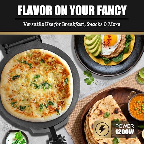 6. Electric Tortilla Press & Roti Maker 12-Inch Non-Stick Dough Press for Tortillas Flatbreads & Pizza Kitchen Countertop Accessory for Home Cooking